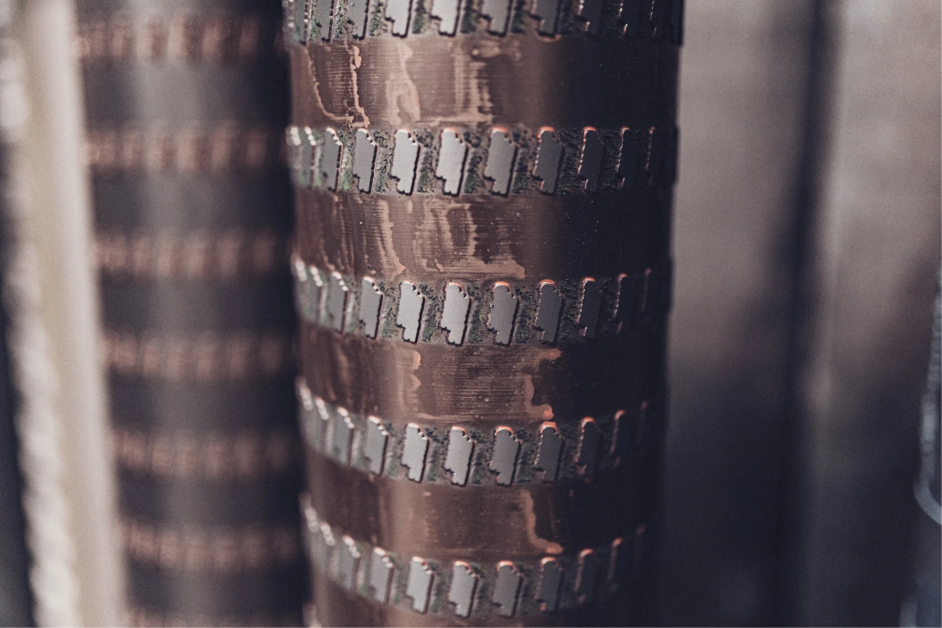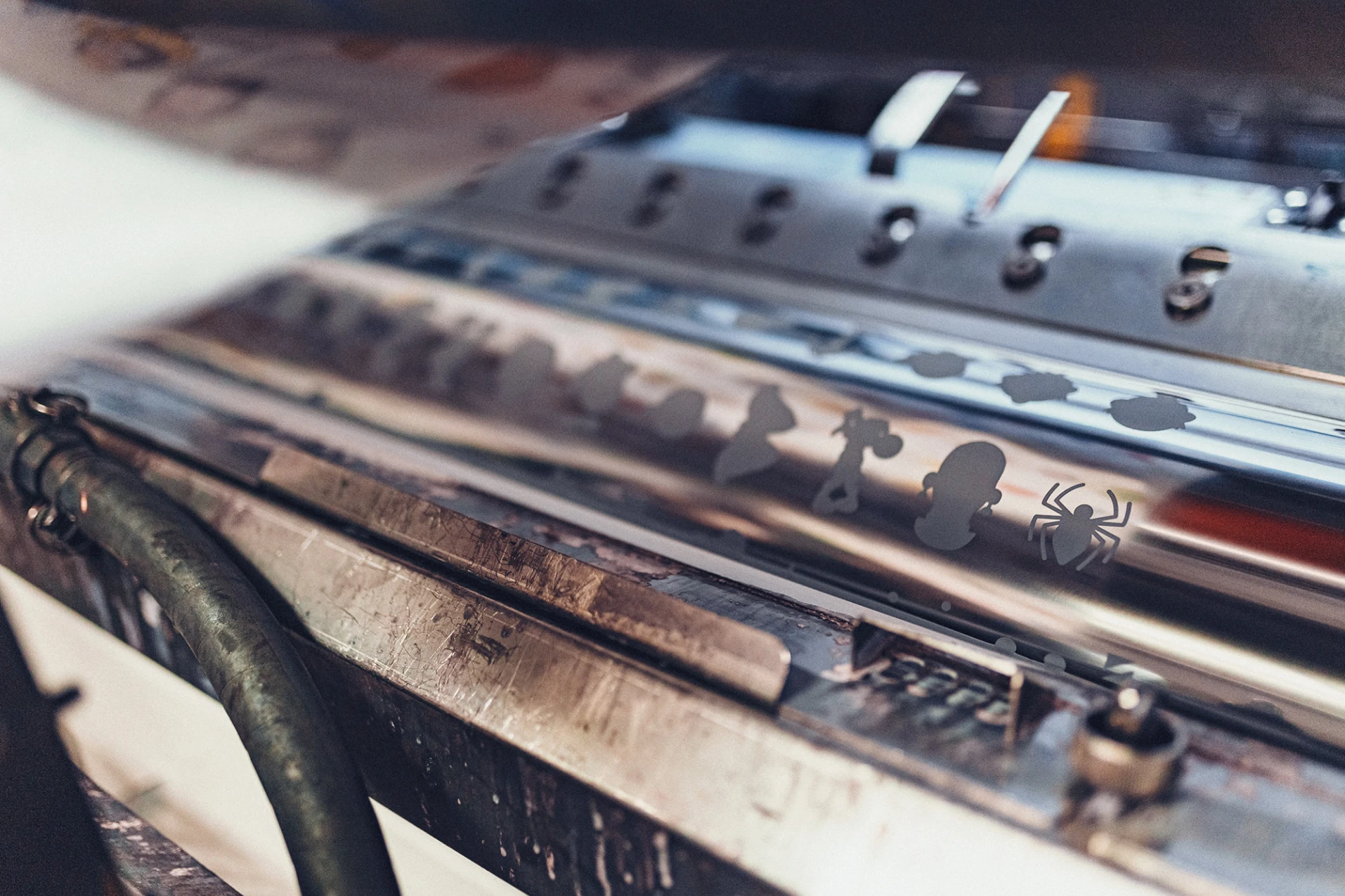 Beim Tiefdruckverfahren werden Druckbildinformationen in Kupferzylinder graviert, meist in den Skalenfarben CMYK.